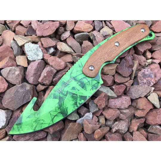 With its unique blade curvature and game-inspired design, this gut hook knife captures the spirit of virtual battles while offering a real-world replica experience. Its bold lines and detailed finish showcase a fusion of creativity and functionality.