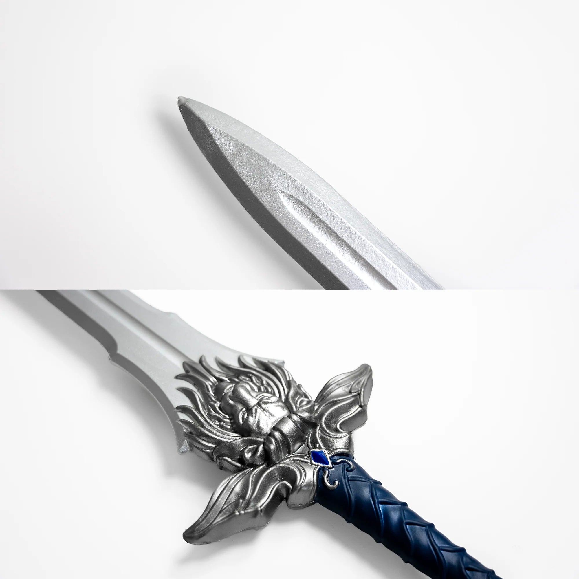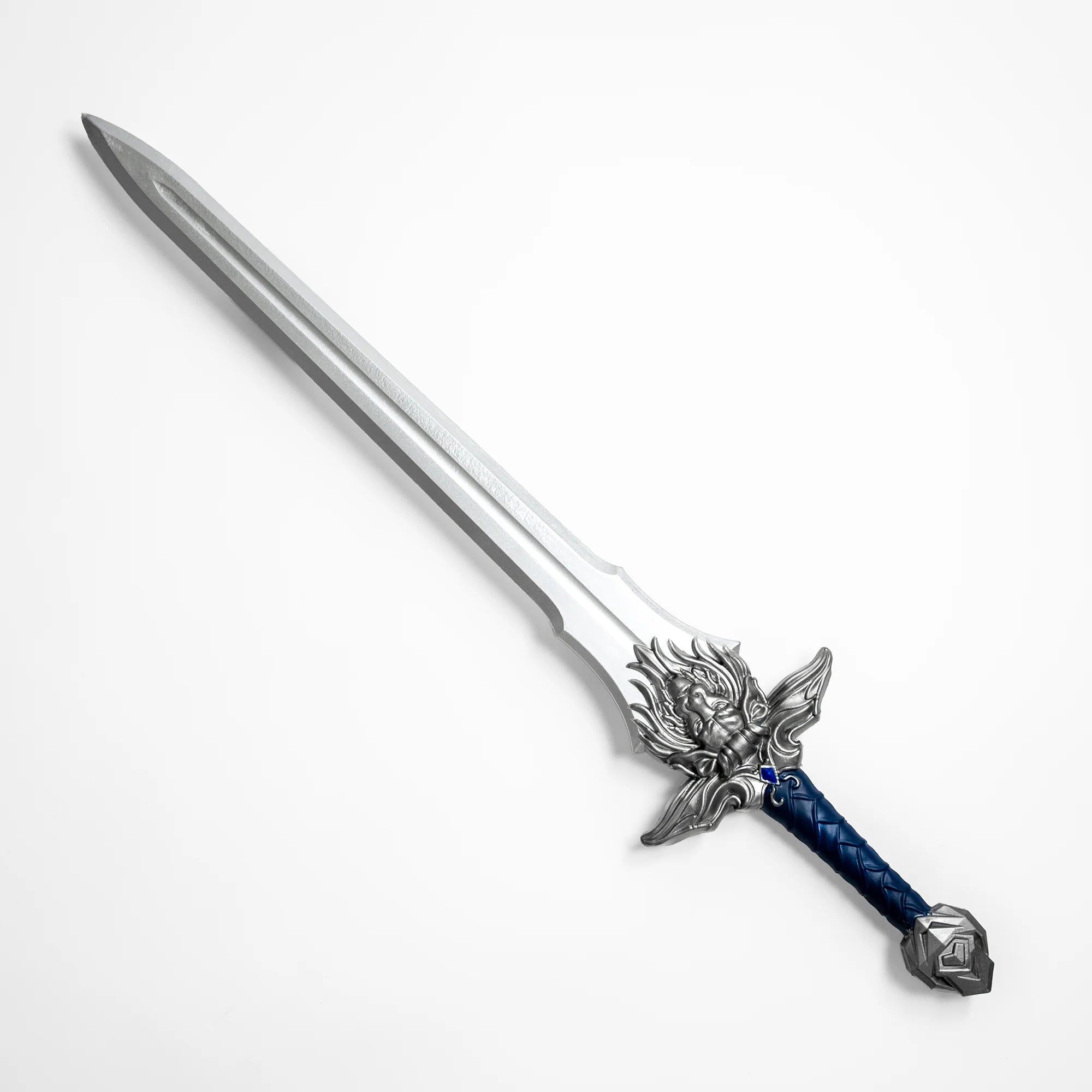 This replica showcases the iconic Warcraft style, featuring a broad shining blade, a decorative hilt with golden accents, and the lion crest of Stormwind. Every detail pays tribute to Anduin Lothar, the Lion of Azeroth, who remains a beacon of loyalty and valor within Warcraft lore.
