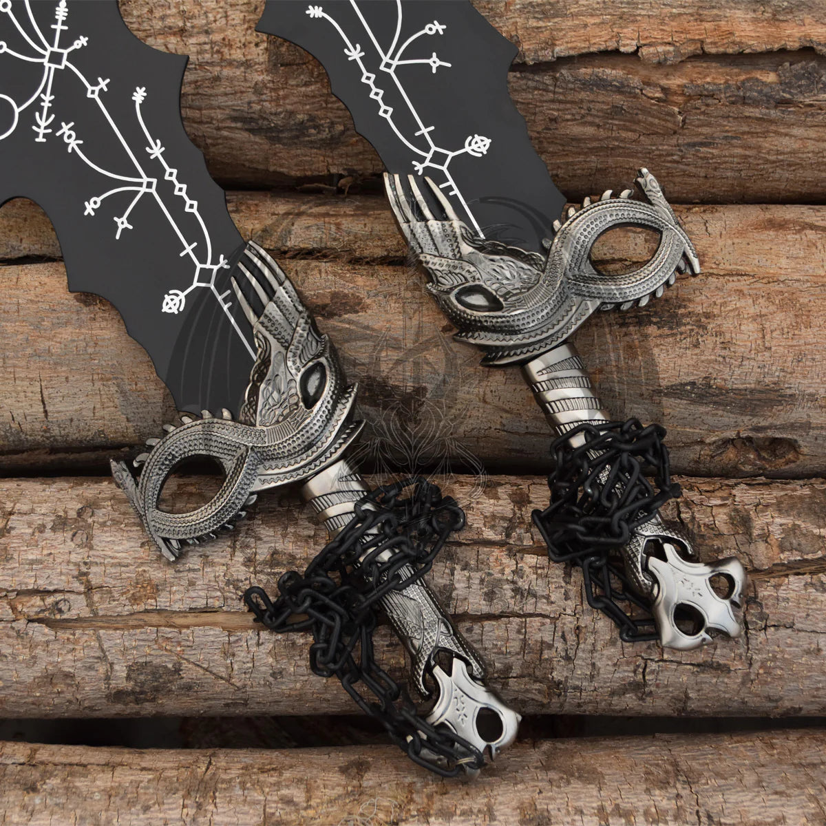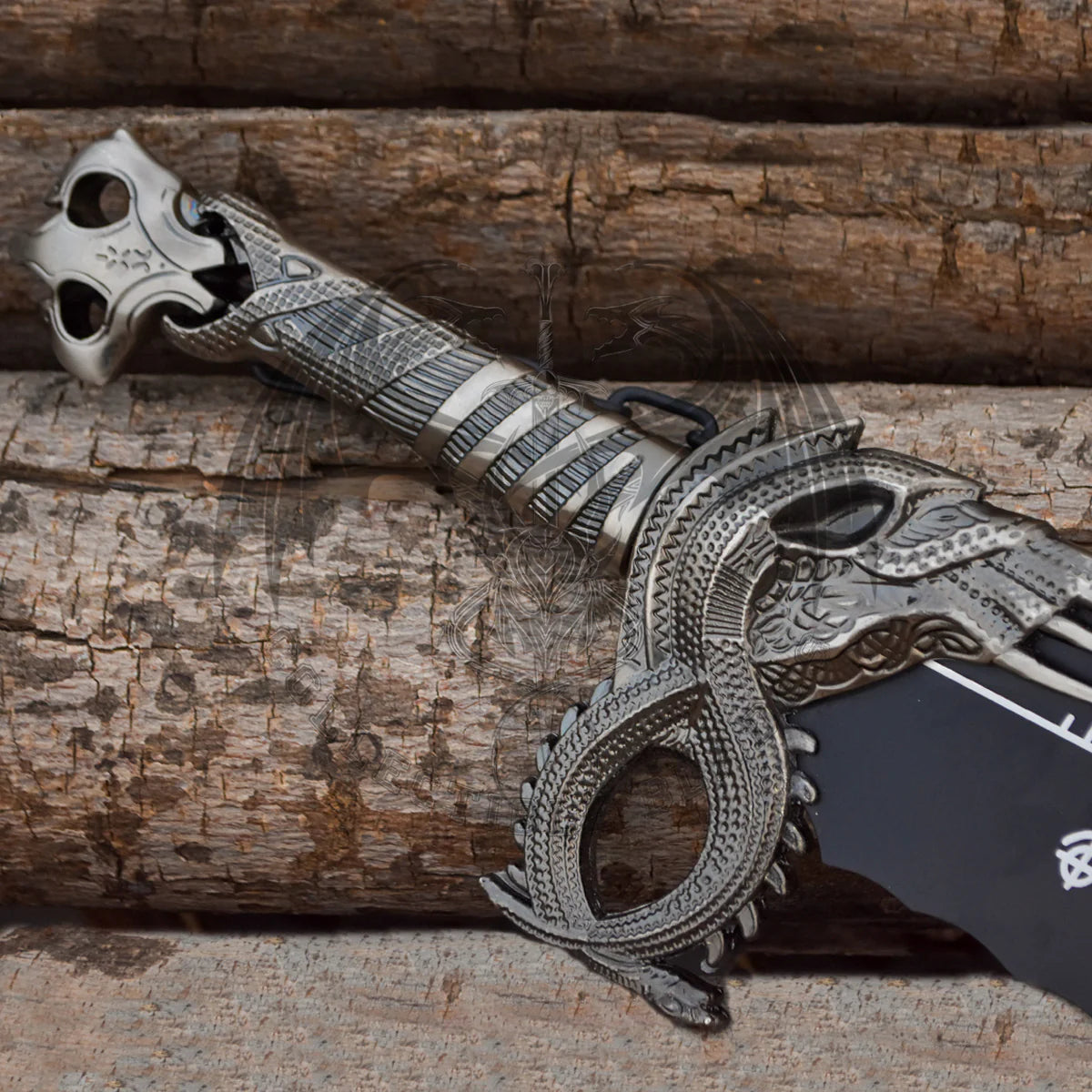 The GOW Blade of Chaos Norse Black Edition embodies raw fury and mythic artistry. Much like the legendary Modi's Mace, it balances elegance and brutality in a single collectible. Fans of God of War will instantly recognize the iconic dual-blade design, forged to channel Kratos’ rage. Whether displayed as a centerpiece or used in cosplay, this weapon stands as a symbol of power and Norse legacy.