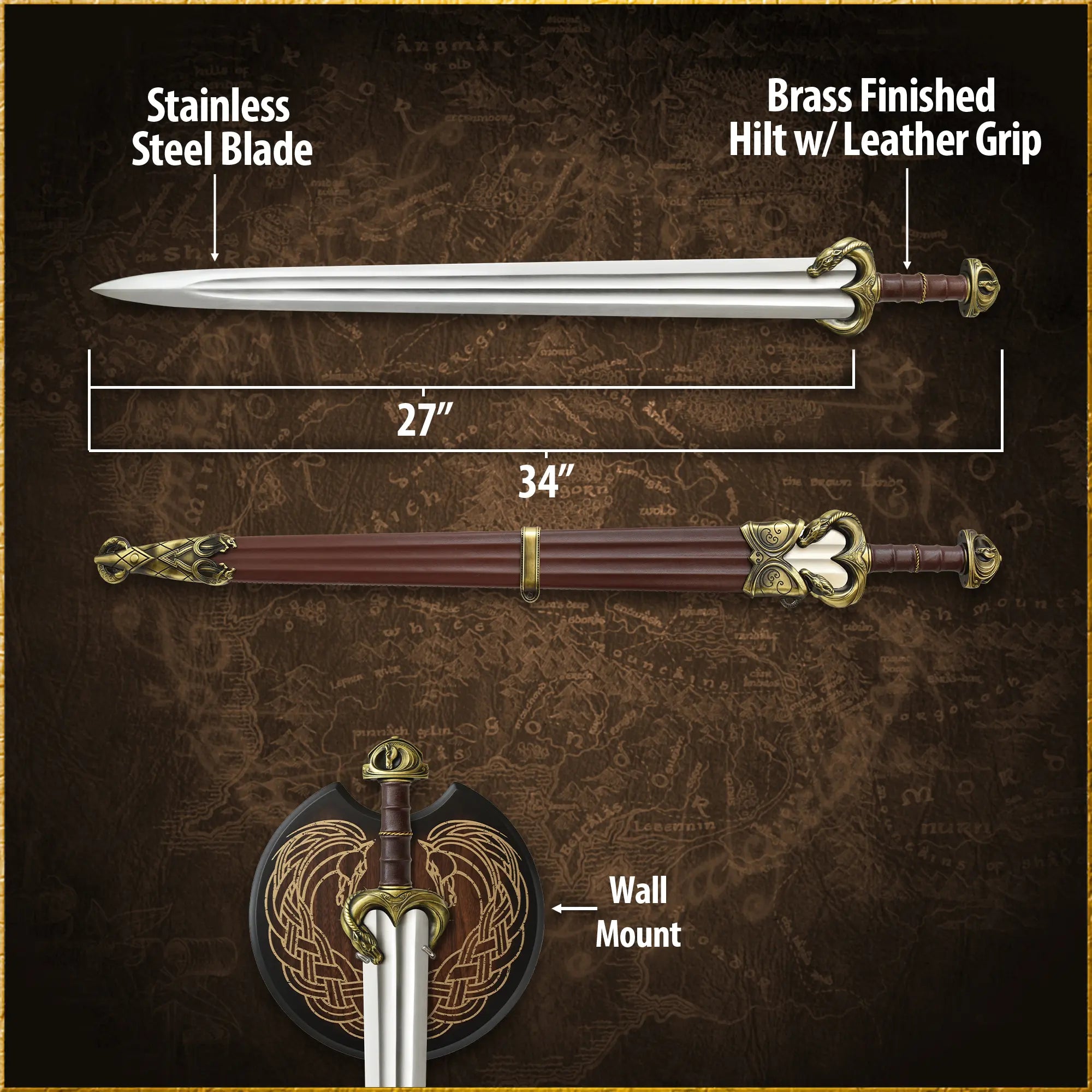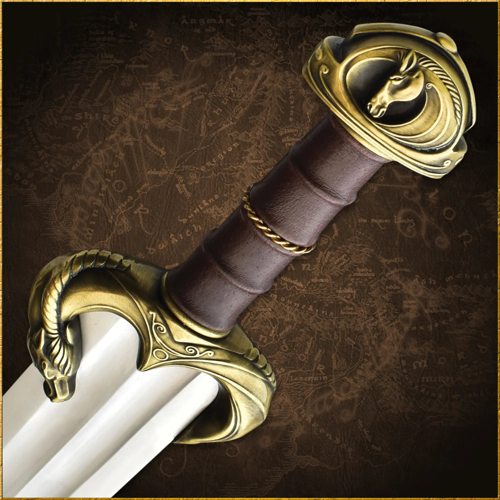 This masterfully recreated replica reflects the battle-ready grandeur of Rohan’s finest warrior. Its historic detailing and authentic LOTR styling make it a striking centerpiece for any Tolkien-inspired collection or fantasy display.