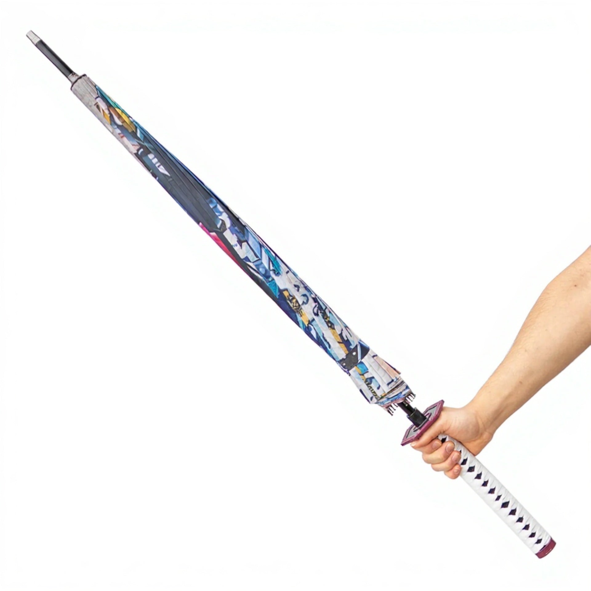 The Giyu Tomioka's Blue Nichirin Katana Umbrella blends unique fandom-inspired detailing with practical utility. It stands out as both a collectible and a functional accessory, making it a must-have for Demon Slayer enthusiasts.