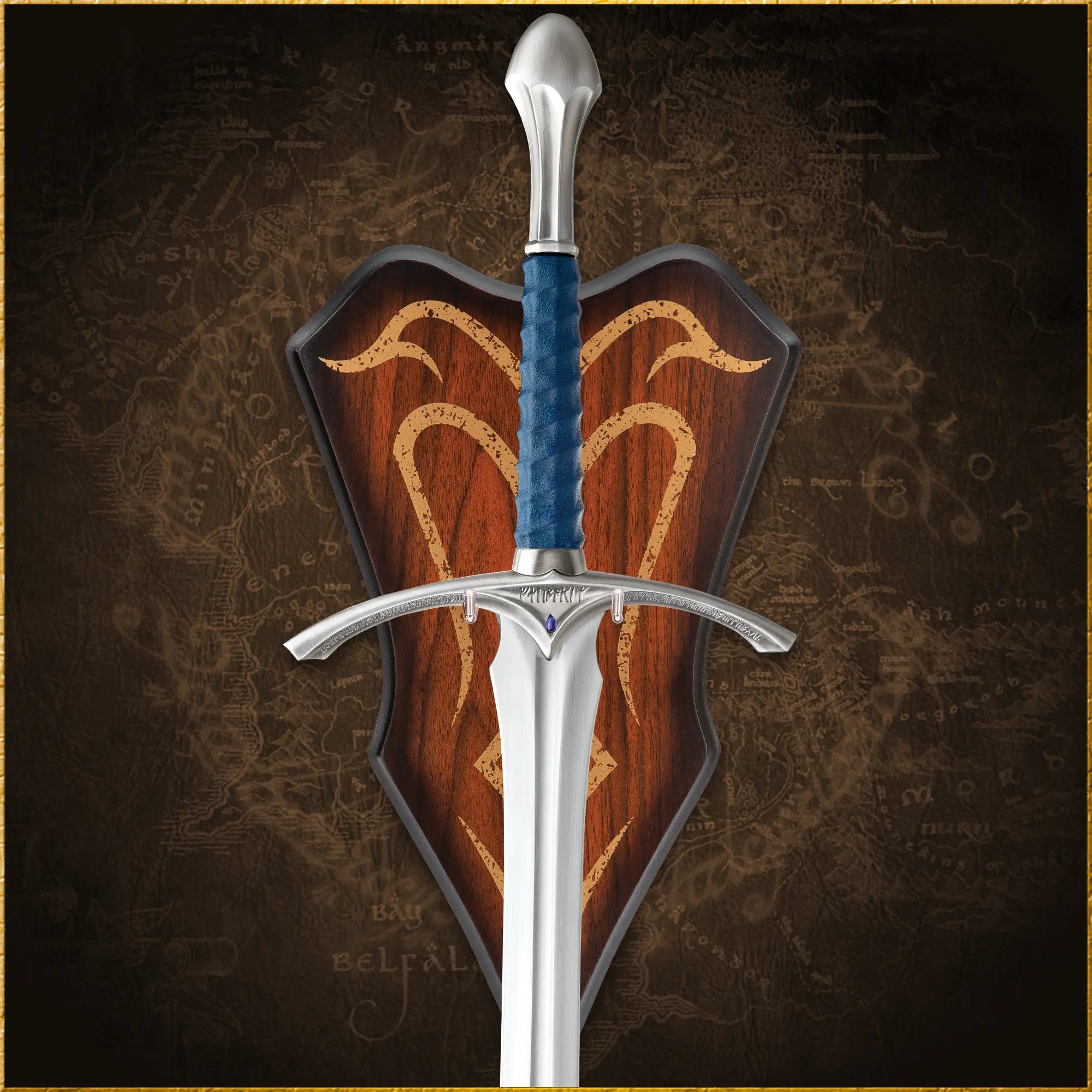 The Officially Licensed Glamdring Sword of Gandalf is a legendary weapon brought to life with remarkable accuracy and detail. Known as the "Foe-Hammer," this iconic blade was wielded by the White Wizard during pivotal battles across Middle-earth. Much like the Sword of Boromir By United Cutlery, Glamdring is not just a weapon but a storied relic, carrying with it the wisdom and power of one of Tolkien’s most enduring characters.