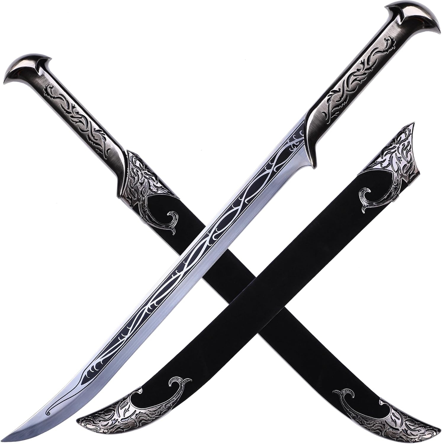 This replica sword features a sleek, curved blade paired with an intricately detailed hilt adorned with Elven motifs. Designed to reflect the timeless beauty of Elven smithing, it offers both visual authenticity and fantasy appeal, making it perfect for cosplay, collection, or display.