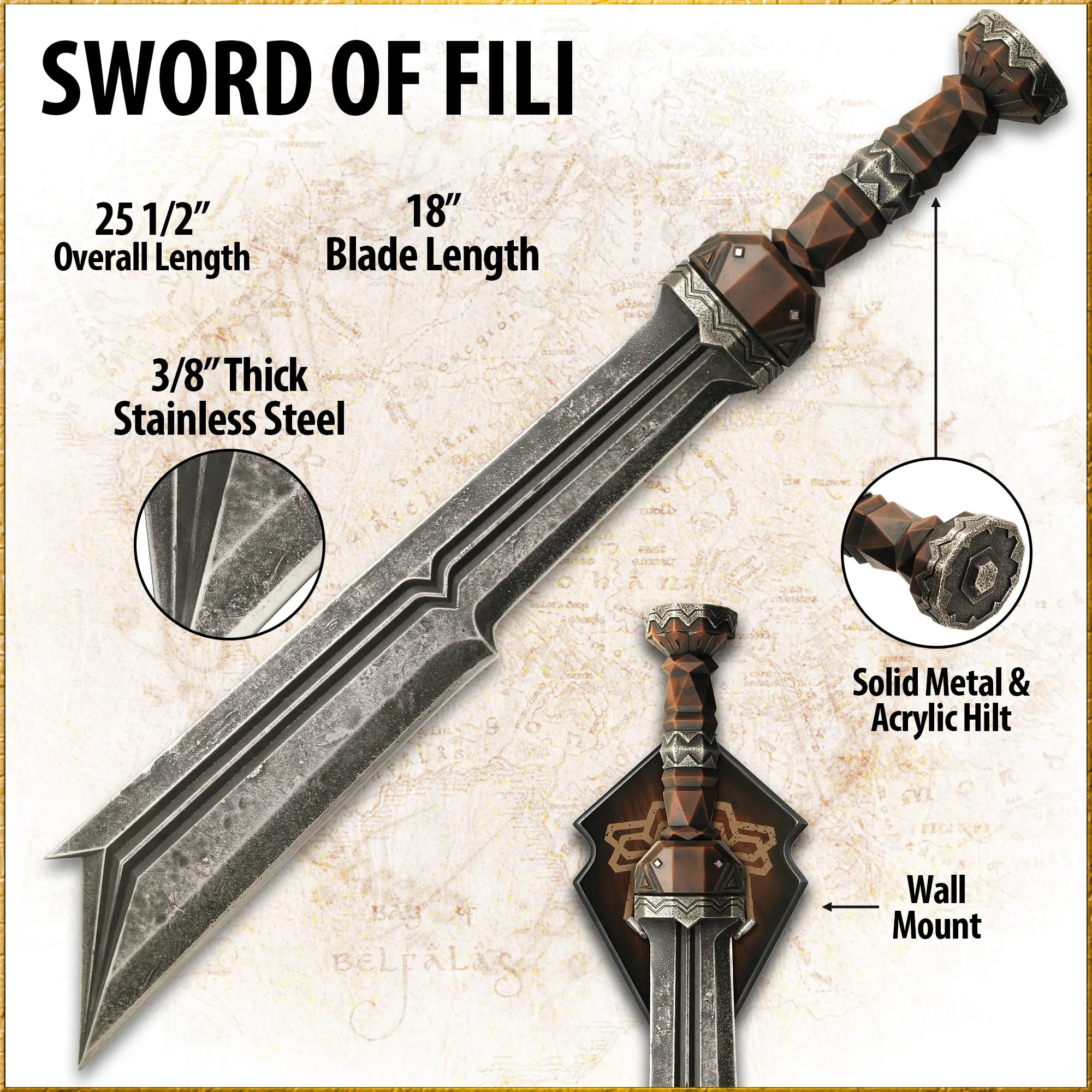 The Fili Dwarven Sword is cherished for its iconic look and symbolic meaning. Collectors value its faithfulness to the films and the way it represents Fili’s bravery and role in the Company of Thorin, making it a standout addition to any fantasy sword collection.