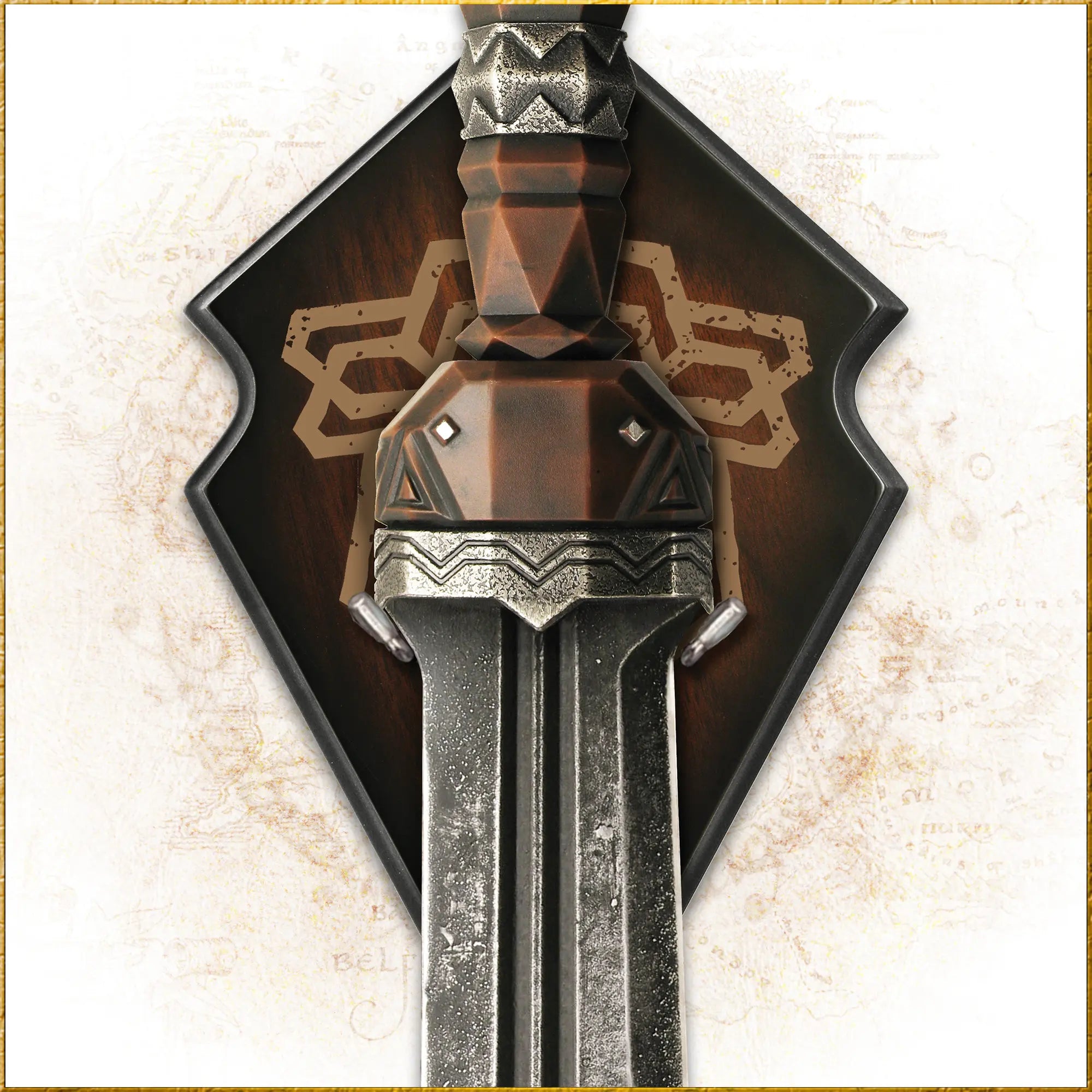 Fili’s sword reflects the resilience and valor of the Dwarves of Erebor. With its broad blade, angular lines, and sturdy hilt, this replica showcases the distinctive geometric design of Dwarven weapons. It’s a striking tribute to Fili’s loyalty and courage in the quest to reclaim the Lonely Mountain.