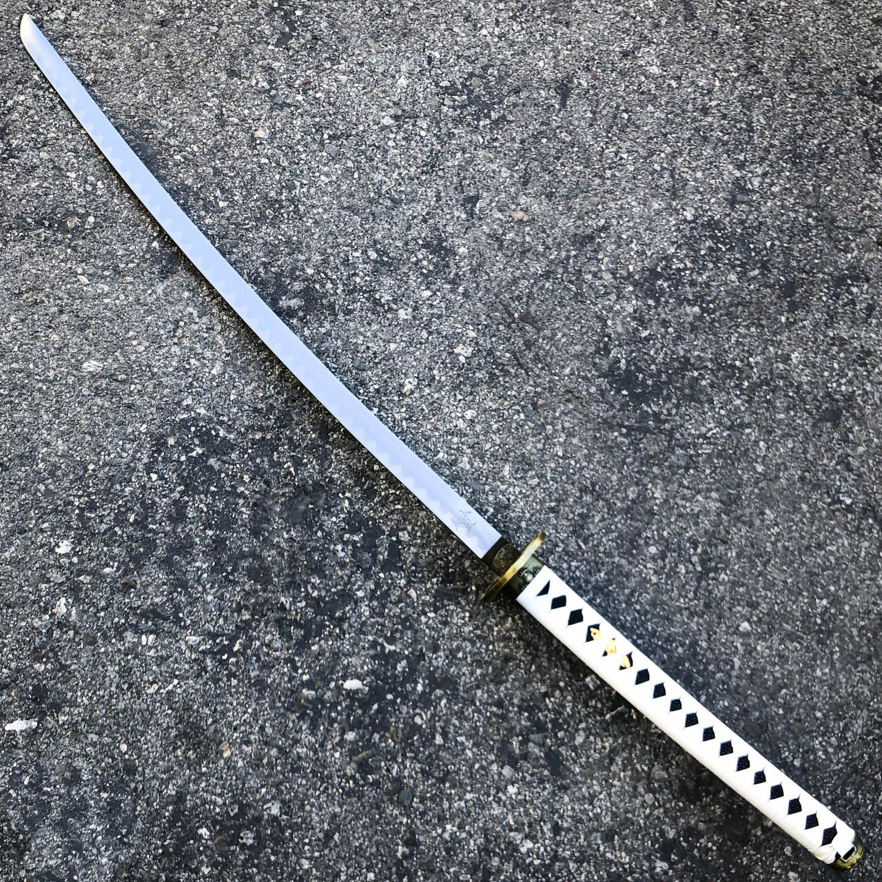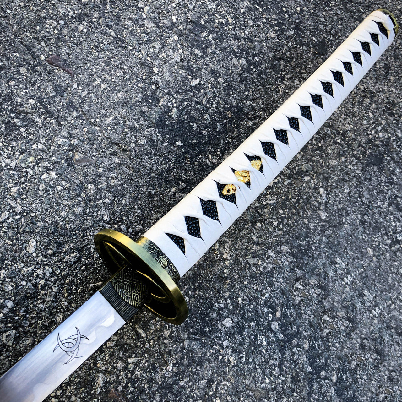 This katana pays homage to Michonne, the fearless survivor, with a design that reflects both authenticity and cinematic detail. Crafted in the tradition of movie and TV swords, it features a curved high-carbon blade, a leather-wrapped handle, and a distinctive white scabbard that mirrors its on-screen presence.