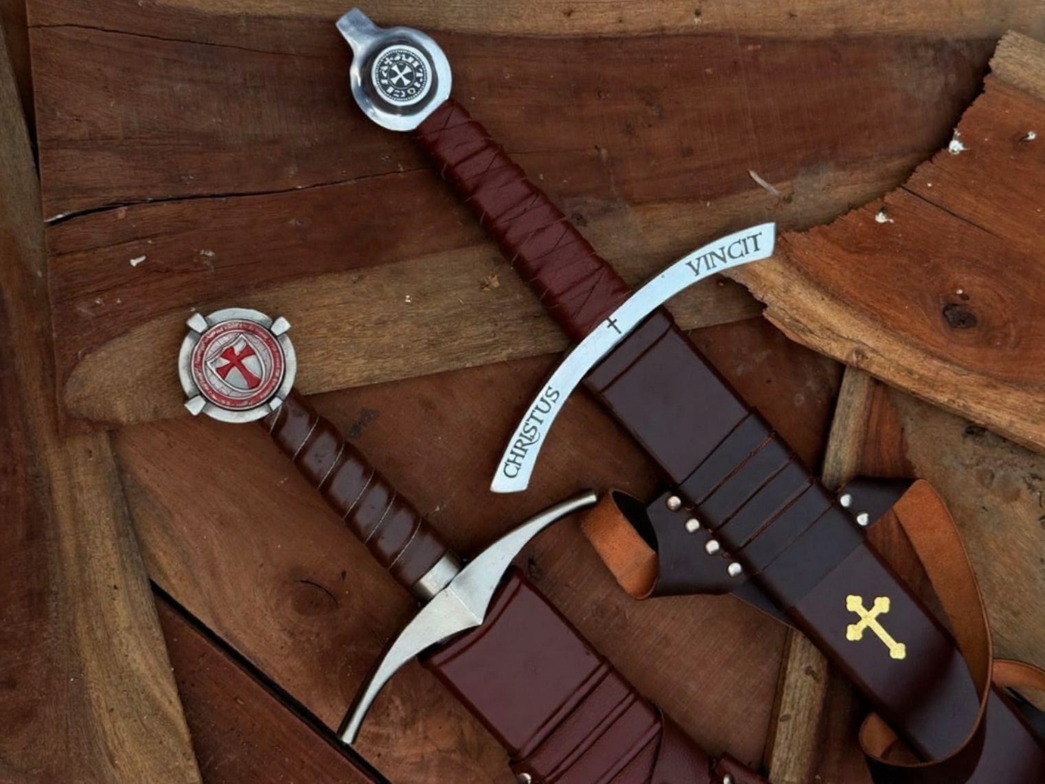 Templar cross engraving on pommel and guard