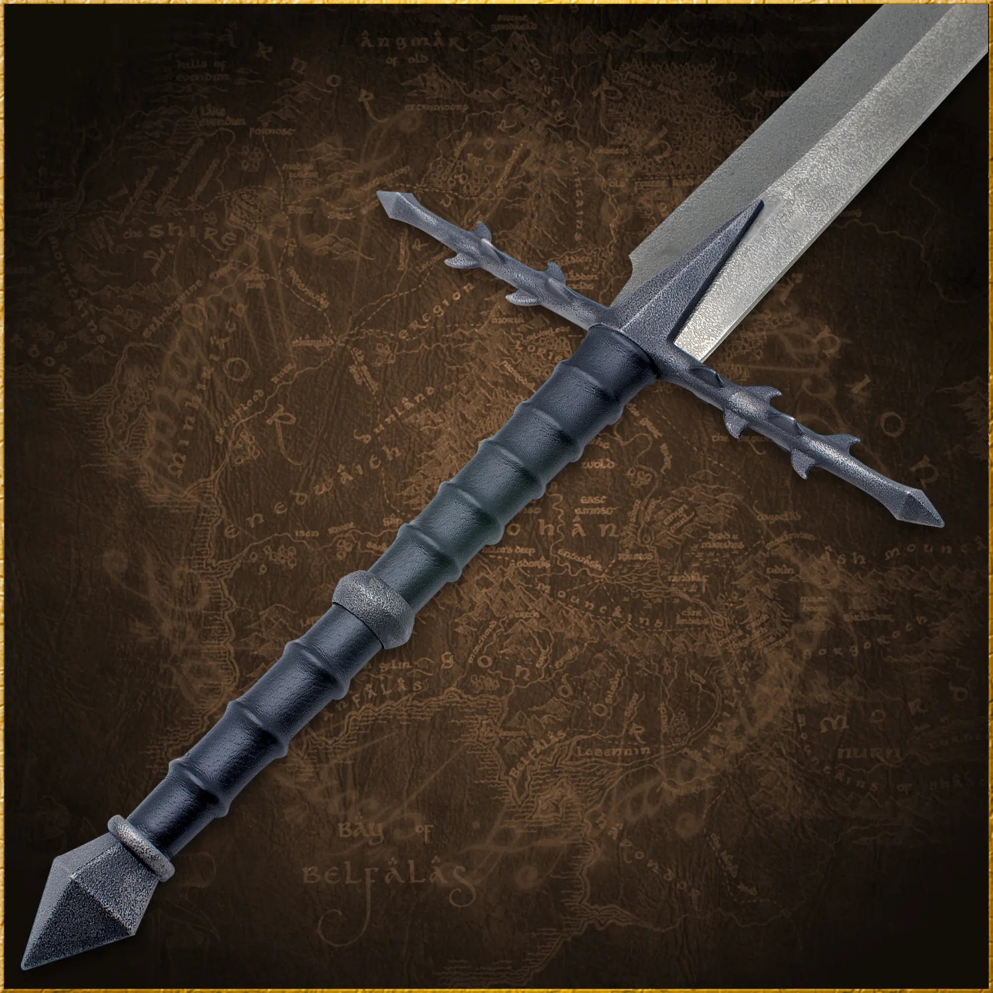 The Ringwraith Sword captures the ominous aura of the Nine. Its long, menacing blade and intricate hilt are crafted with an eye for authenticity, echoing the fear these wraiths inspired on the battlefield. This sword is more than a replica—it is a chilling reminder of Tolkien’s most formidable villains.