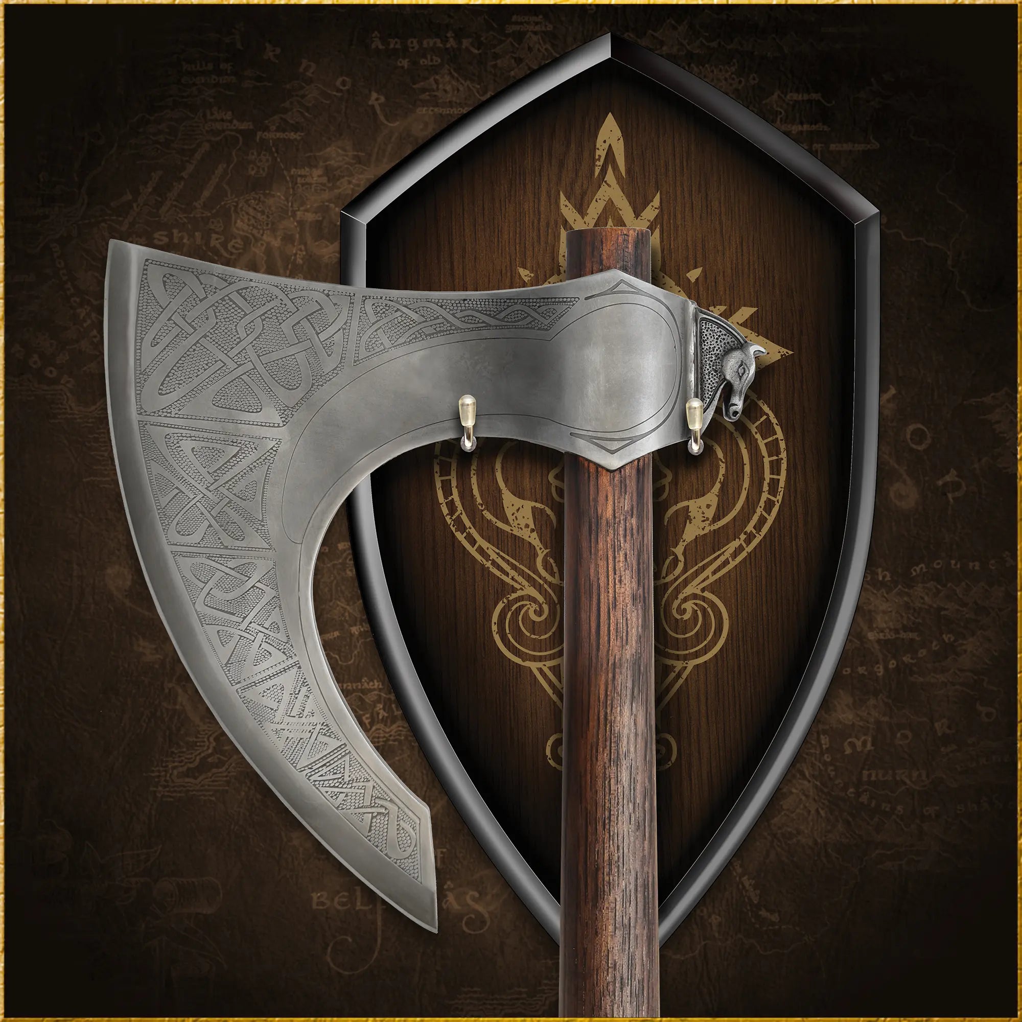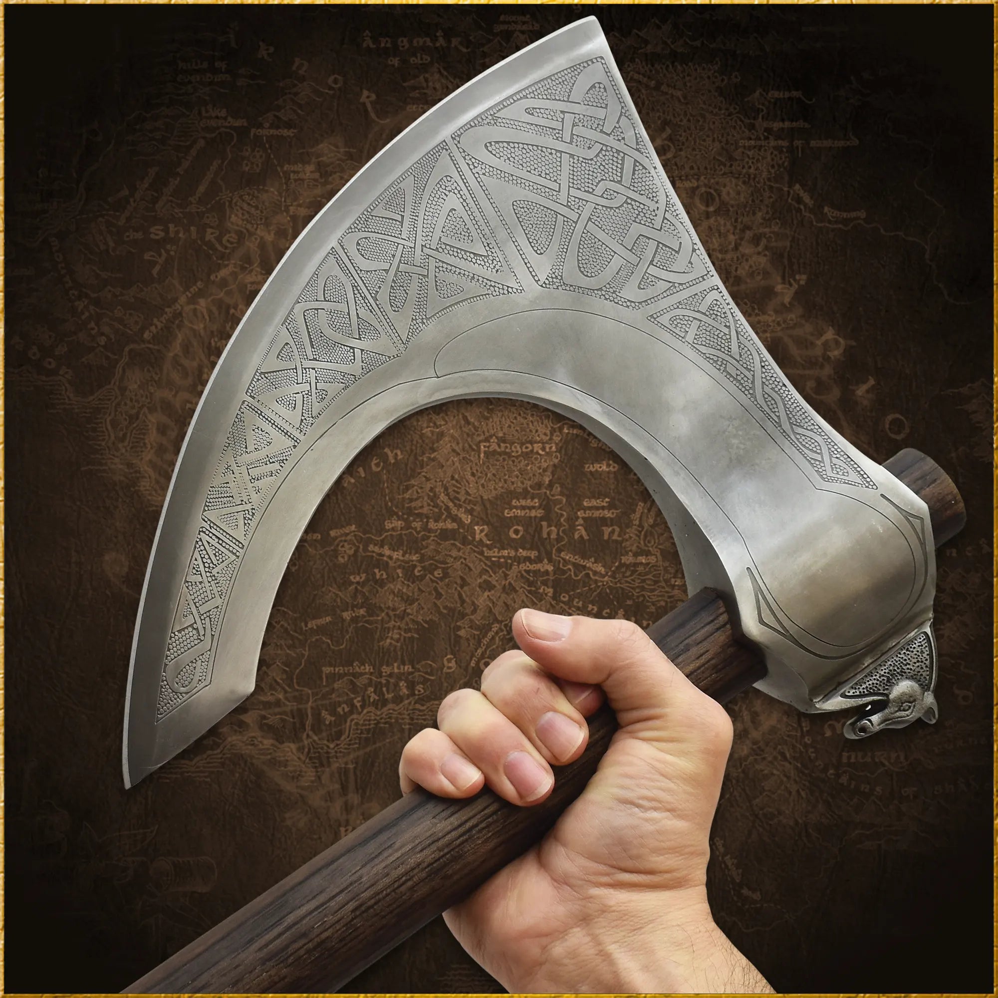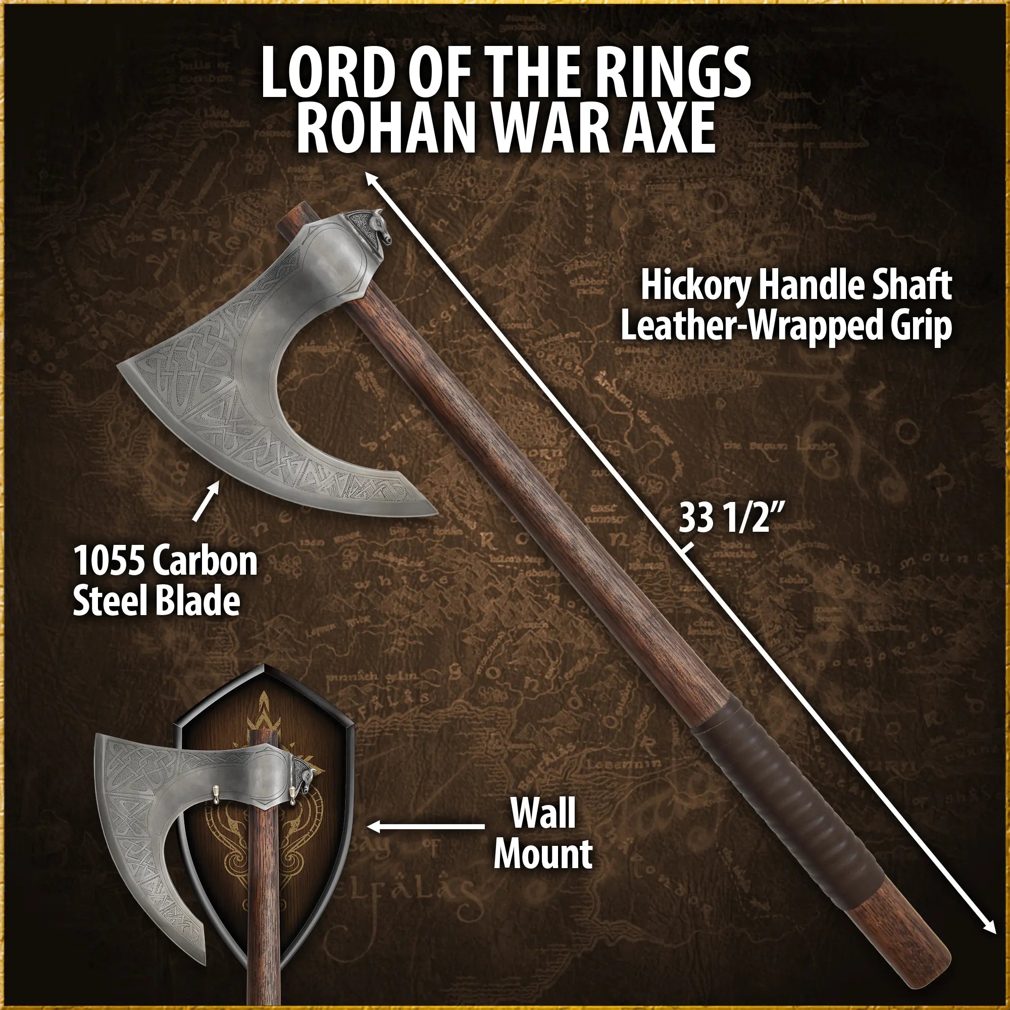 The Officially Licensed Rohan War Axe – Lord of the Rings Replica is a faithful recreation of the battle-ready weapons wielded by the brave Riders of Rohan. Designed with stunning accuracy and craftsmanship, this axe reflects the proud heritage and unyielding strength of the horse-lords. Much like the Sword of Boromir by United Cutlery, it combines authenticity with collectible value, making it a must-have for Middle-earth enthusiasts.