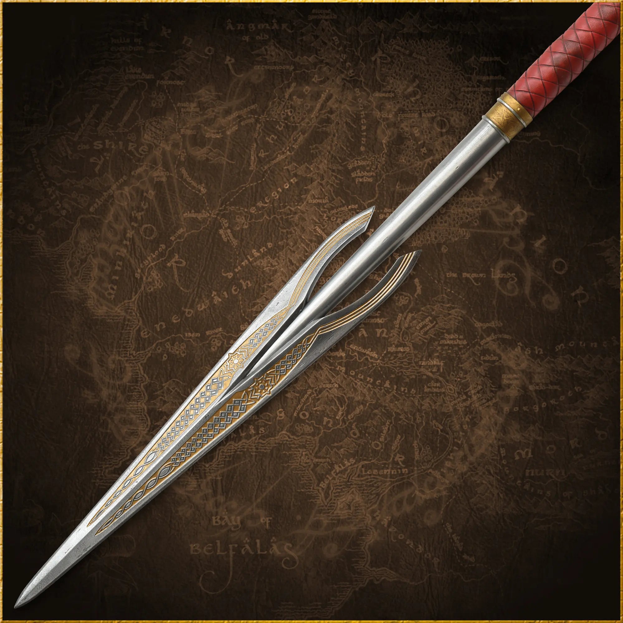 The Officially Licensed Spear of Éomer – Lord of the Rings Replica honors the noble Marshal of the Riddermark, capturing the valor and heritage of Rohan. This authentic collectible reflects Éomer’s strength and leadership, making it a striking addition to any Tolkien-inspired armory. Much like the Hadhafang Arwen Sword from LOTR, it blends artistry, cinematic legacy, and masterful craftsmanship.