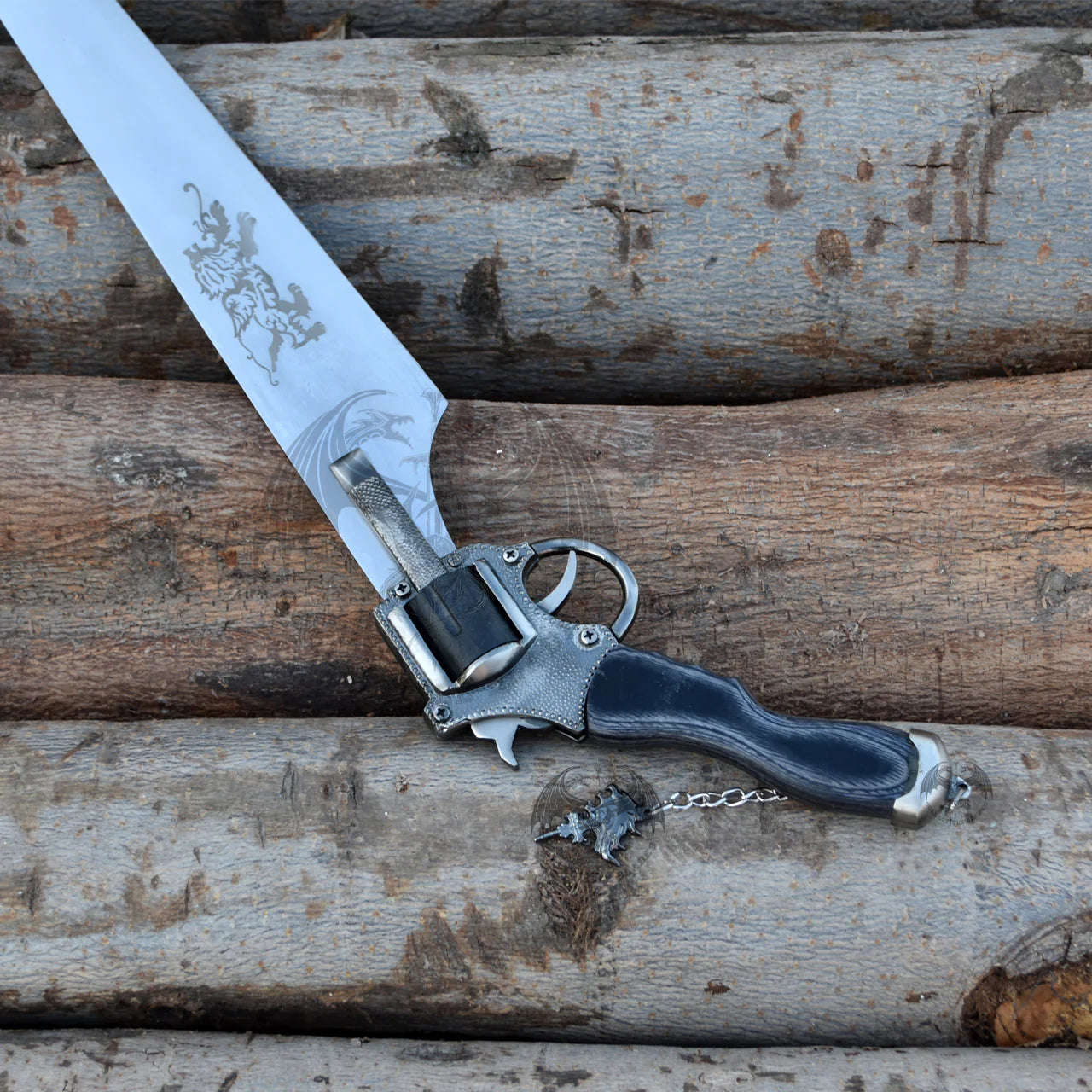 The Gunblade features a dual-purpose forged blade combined with a functional trigger mechanism and a sturdy reinforced handle, faithfully capturing Squall’s in-game proportions. Its unique silhouette emphasizes strategic combat and heroism, making it a standout piece in any collection.
