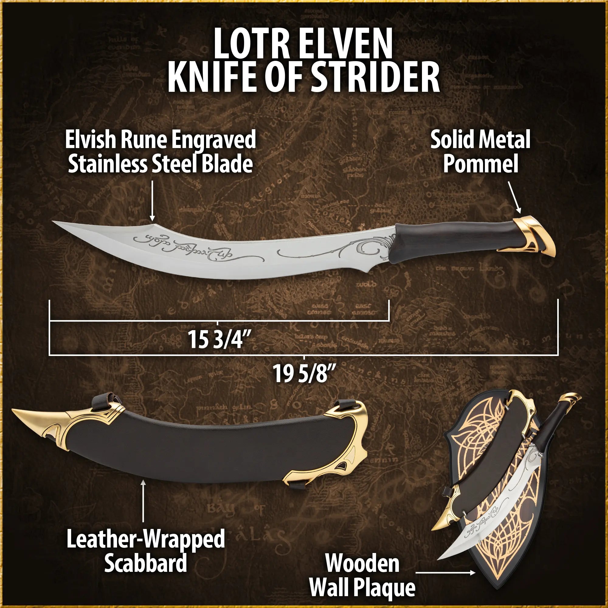 Bring home a piece of Middle-earth with the Elven Knife of Strider – Officially Licensed LOTR Replica, a blade as timeless as the hadhafang sword in its craftsmanship and legacy. This elegant weapon was gifted to Aragorn by the elves, symbolizing protection, loyalty, and strength. Perfectly designed for collectors, it reflects the balance between rugged ranger practicality and the refined artistry of elven culture.