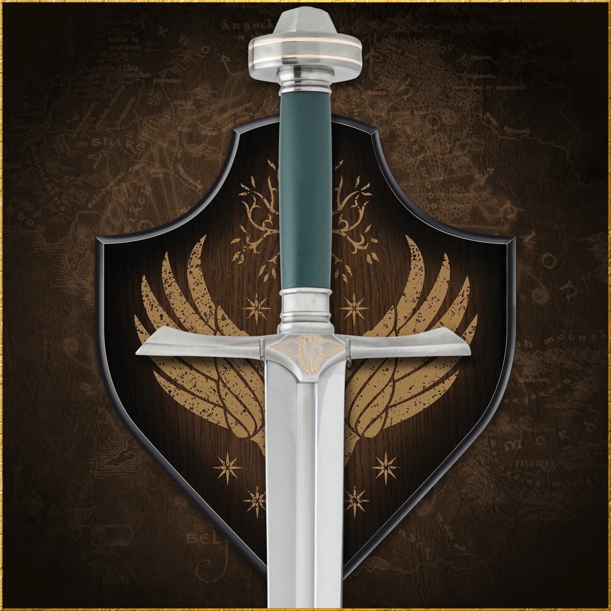 A: Absolutely, it pairs beautifully with replicas like the Sword of Boromir or the Andúril Sword of Aragorn.