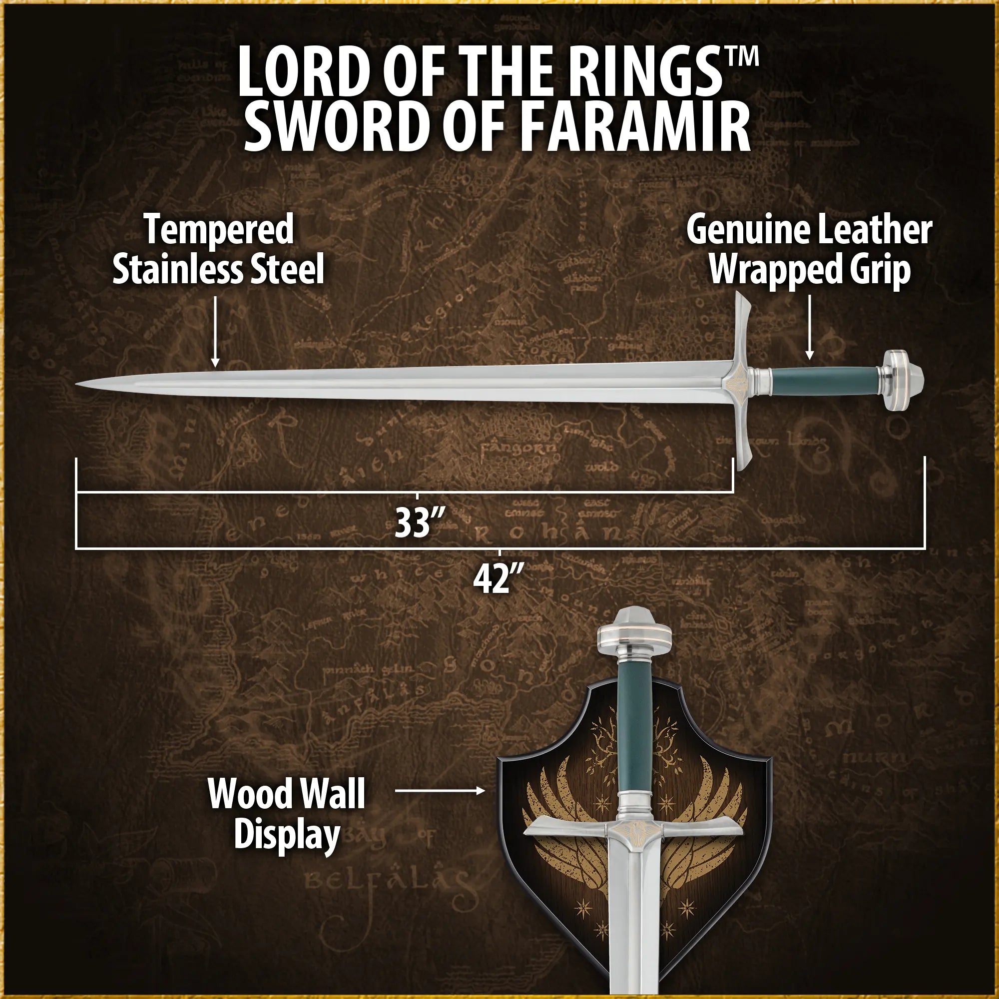 As an officially licensed replica, this sword offers more than craftsmanship—it provides authenticity. Perfect for collectors, fans, and enthusiasts, the Sword of Faramir is a centerpiece worthy of display, symbolizing Gondor’s resilience and Faramir’s enduring legacy.