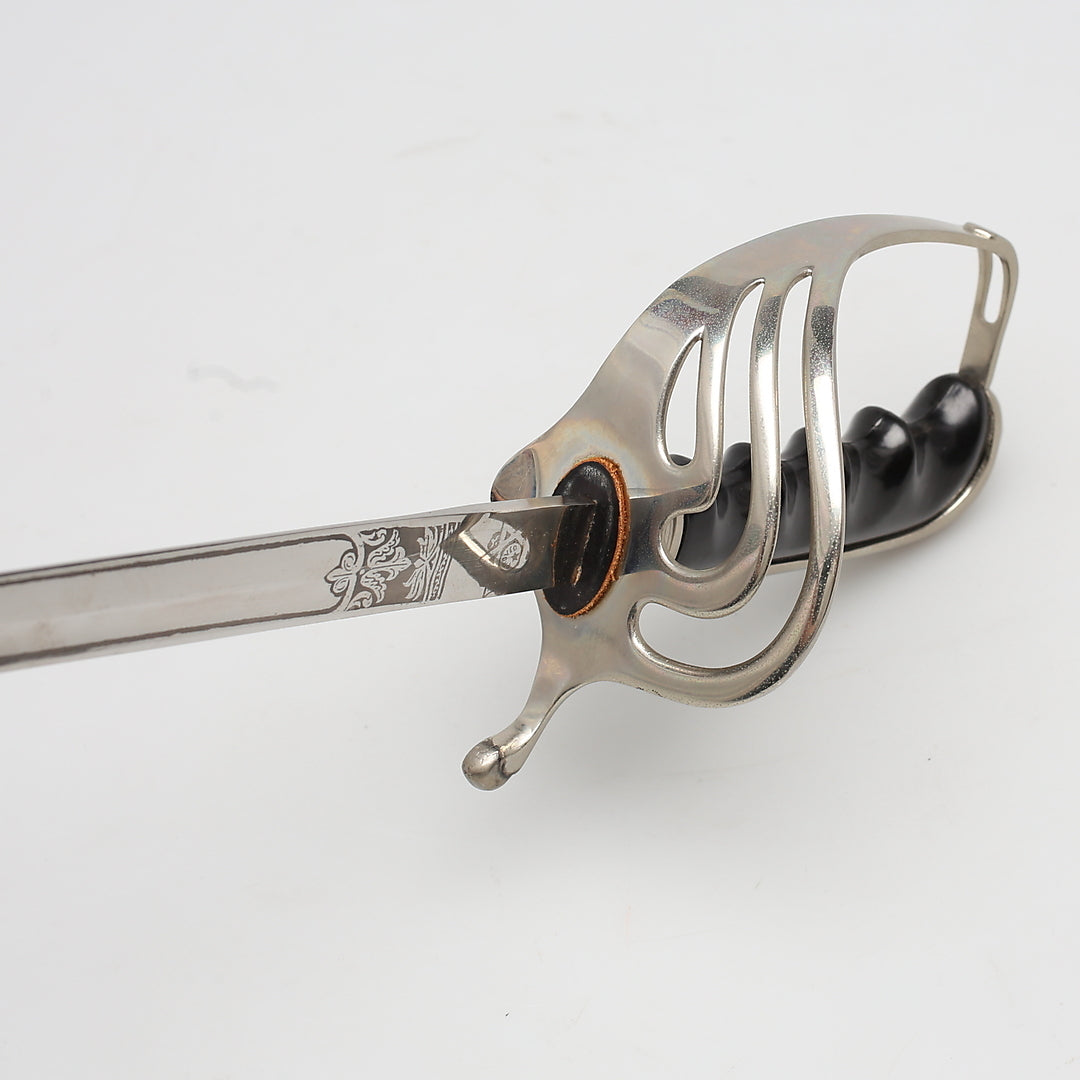 This sword is modeled after the traditional weapon carried by commissioned officers during parades, ceremonies, and official events. Featuring a gleaming stainless-steel blade, a finely detailed guard, and an engraved emblem of the U.S. Army, it reflects the strength and discipline that define America’s armed forces.