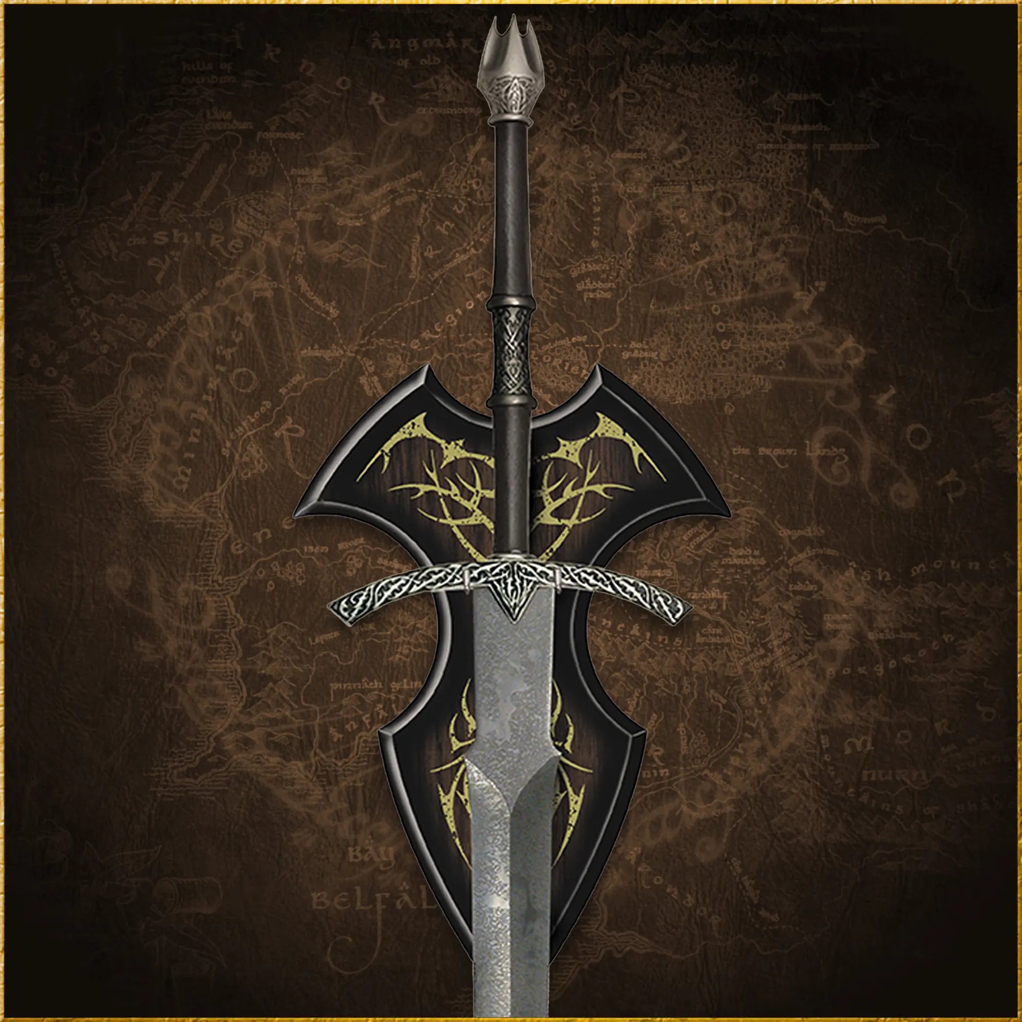 The Witch-king Sword carries with it the aura of dread that struck fear into the hearts of Middle-earth. Its long, dark blade paired with an ominous hilt reflects the unyielding might of the Ringwraiths. This officially licensed replica captures every detail, giving collectors a faithful reproduction of a weapon tied to some of the most memorable battles in Tolkien’s legendarium.