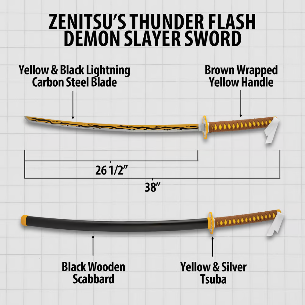 Screen-accurate design that mirrors Zenitsu’s legendary Nichirin Blade